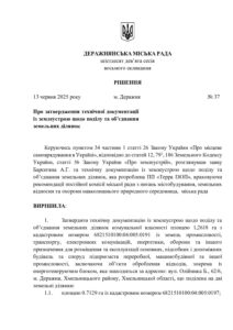 37. Про затвердження технічної документації із землеустрою щодо поділу та об’єднання земельних ділянок