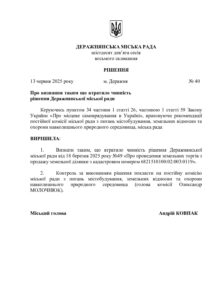40. Про визнання таким що втратило чинність рішення Деражнянської міської ради