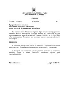 17. Рішення виконкому Про розмір плати за навчання в музичній школі